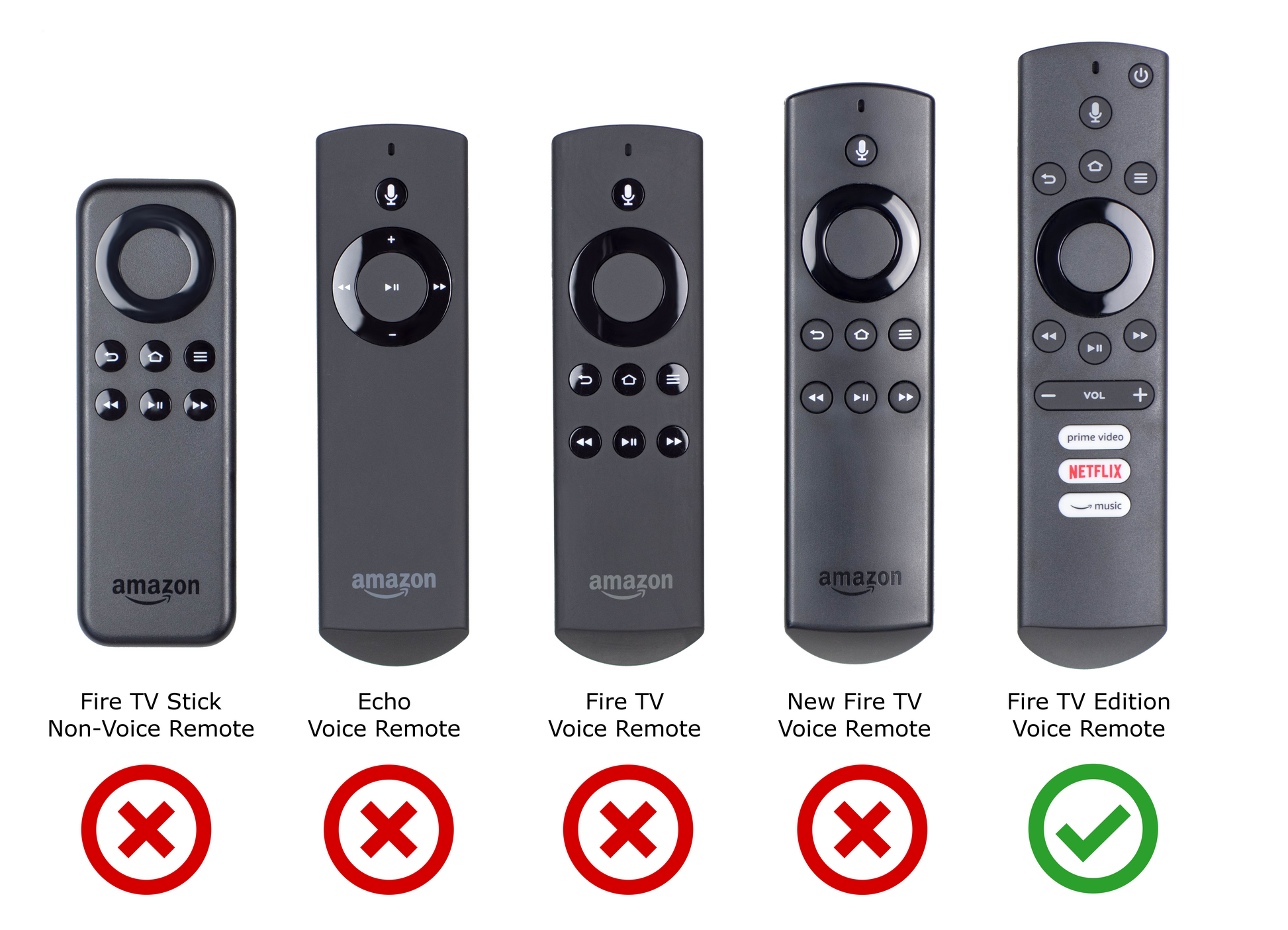 - NOT Compatible with stand-alone Fire TV, Fire TV Stick, Alexa, or Echo Remote Controls